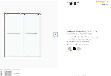 MAAX Duel Shower 56-58.5 x 70.5-74 CL BN Item #798043Model #836272-900-305-00
